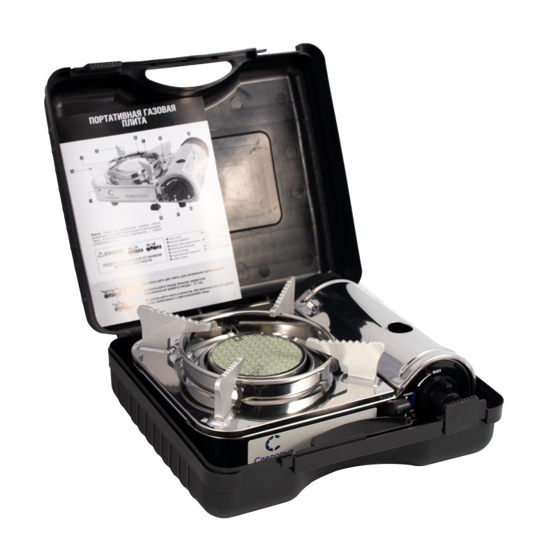 Комплектация: газовая плита, пластиковый кейс для транспортировки и хранения, инструкция по эксплуатации на русском языке.