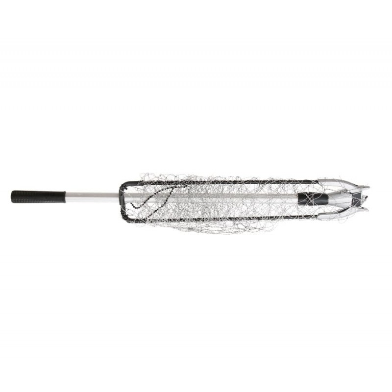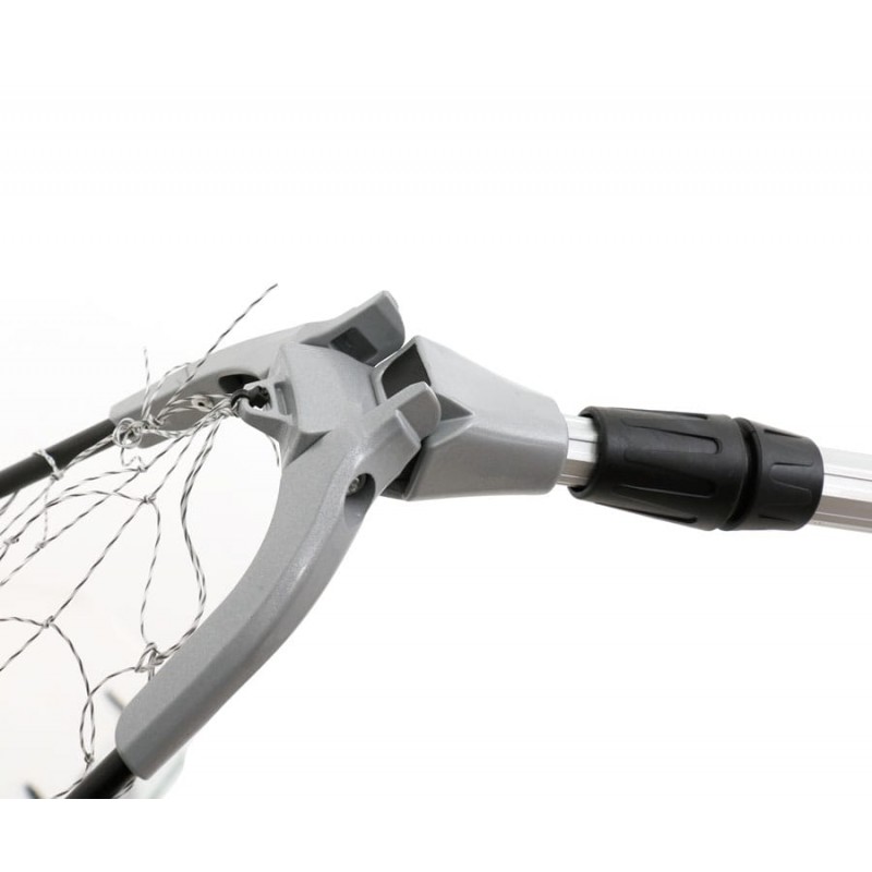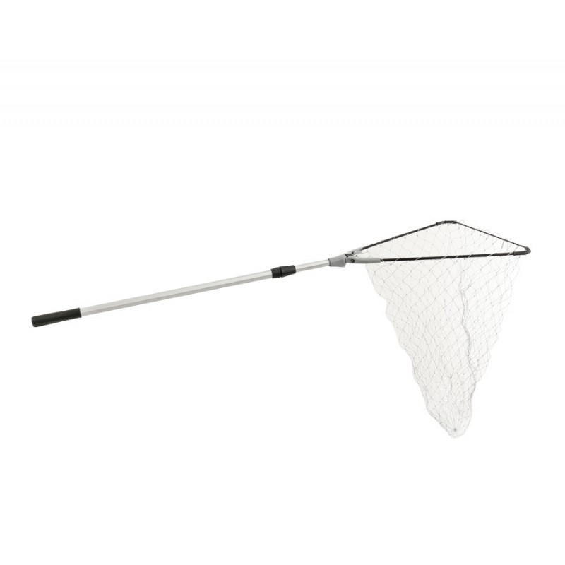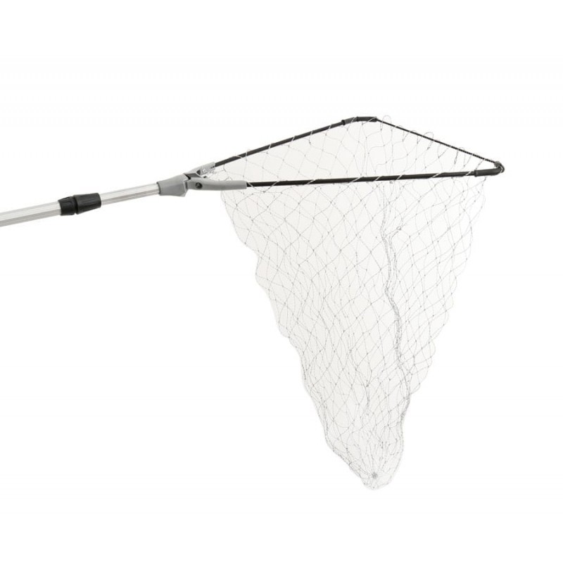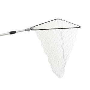 Складной подсак с алюминиевой телескопической ручкой. Шарнирный механизм крепления головы к ручке изготовлен из металла, а фиксатор ручки – из прочного пластика. Сетка из корда для теннисных ракеток отличается тем, что в ней практически не запутываются крючки, что особенно актуально при ловле на воблеры и другие приманки, оборудованные несколькими тройниками.