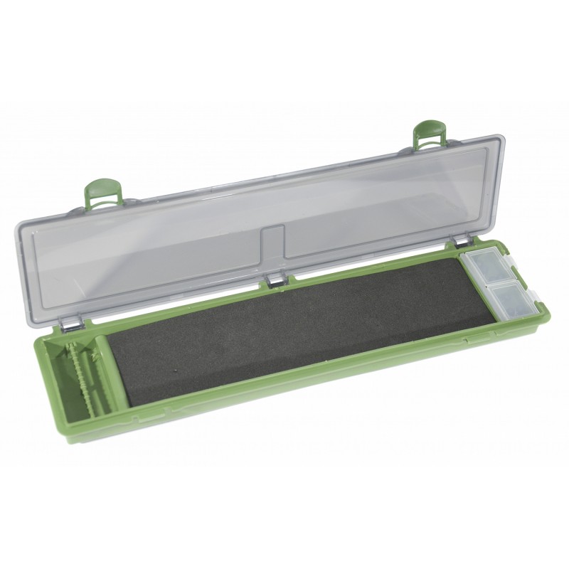 Компактная поводочница RIG Box для хранения карповых поводков изготовлена из прочного пластика. Она имеет два надежных замка на корпусе, которые предотвращают случайное открывание в момент транспортировки. В корпус встроены два отсека для булавок, с помощью которых поводки закрепляются к вспененному вкладышу.
