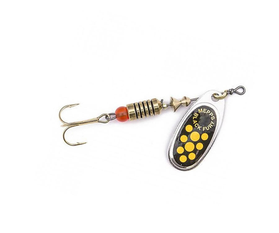 Блесна MEPPS Black Fury 0 сереб.лепесток/желтые капли.