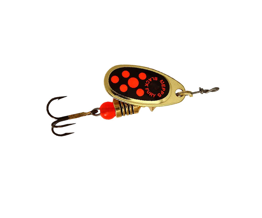 Блесна MEPPS Black Fury 0 золот.лепесток/оранж. капли.