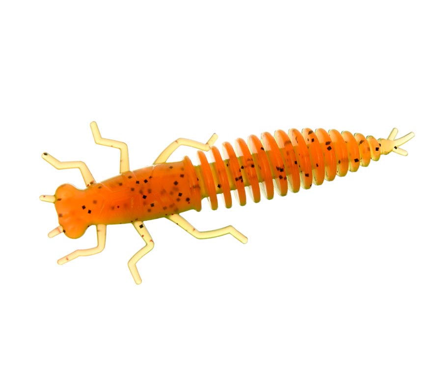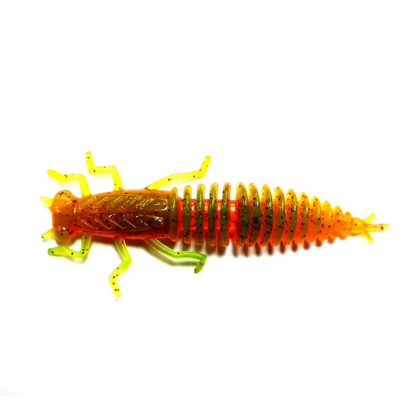 Мягкие приманки, имитирующие личинку стрекозы – казару. Благодаря ребристой конструкции имеют достаточно большой объем, отличаясь при этом исключительной мягкостью и подвижностью. При проводке кольцевые ребра создают турбулентность, выступающую дополнительным привлекающим фактором, а увеличенная благодаря им поверхность тела отдает в окружающую среду вдвое больше включенных в состав пластика мелкодисперсной соли и натурального аттрактанта. Дополнительную привлекательность приманке обеспечивают заманчиво подергивающиеся в движении лапки и хвостик. Благодаря реалистичному виду приманок к улову часто добавляется белая рыба, которая, наряду с хищниками, не прочь полакомиться личинками стрекозы и других насекомых. Эти парусящие приманки дольше других зависают над дном, что зачастую провоцирует на поклевку даже самую пассивную рыбу, причем, вне зависимости от сезона ловли! Приманки изготовлены из нового сверхмягкого пластика, имеющего повышенную аттрактацию и беспроигрышную цветовую гамму.