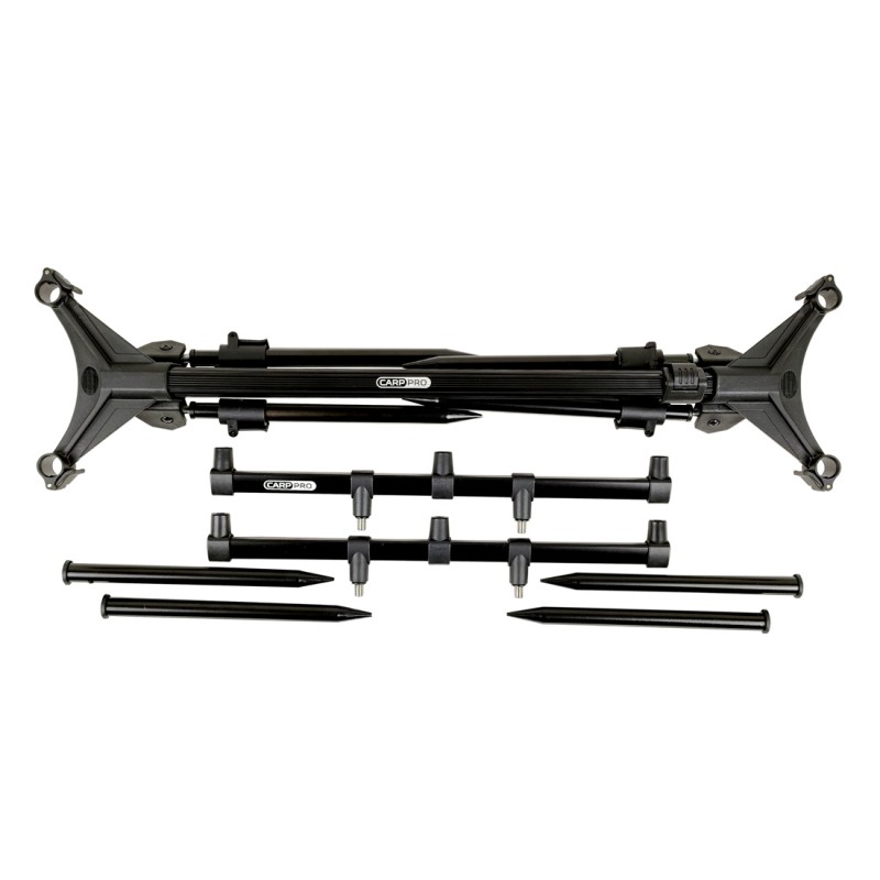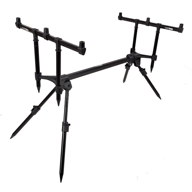 Доступный род-под на три удилища классической конструкции. Легкая и раздвижная рама, съемные, телескопические ноги делают род-под удобным в эксплуатации и перевозке. Причем, бузбар можно использовать без род-пода. Для этого ноги с род-пода снимаются и устанавливаются в бузбар. Поставляется в специальном чехле для транспортировки. Carp Pro Rod Pod Black Color превосходно подойдет как для мобильного рыболова, так и для статичного карпятника.
