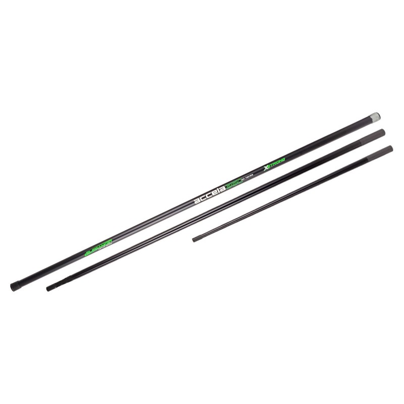 ELEGANCE METHOD Ручка подсака Accela X-Strong 3.6 м - чрезвычайно прочная («X-Strong» – сверхпрочный) и жесткая трехколенная рукоятка для подсака, предназначенная для ситуаций на рыбалке, когда вам нужна именно жесткая и прочная ручка подходящего размера для любого размера рыбы. Рукоять изготовлена из японского карбона HM2, с покрытием тонкослойным EVA на первом и втором колене. Эта ручка имеет стандартную соединительную резьбу, и ее можно использовать в разных длинах (87 см, 145 см, 26 см и 36 см).