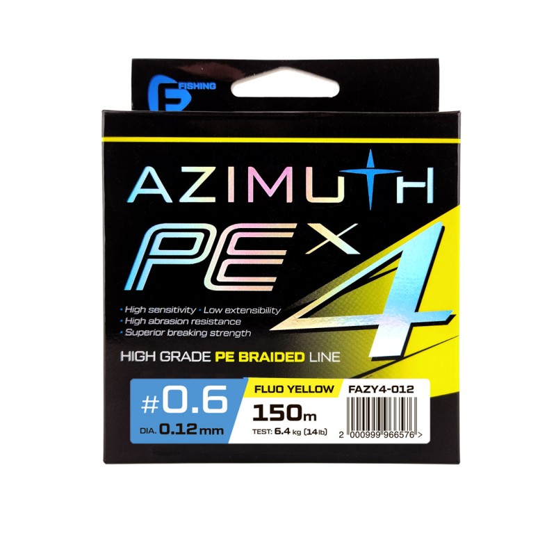 Шнур F-FISHING Azimuth PE X4 150м Fluo Yellow 0,12мм 6,4кг/14lb