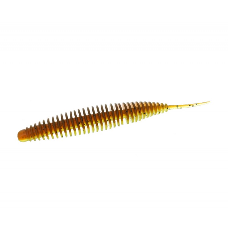 Flagman Hitomi – Пассивная мягкая приманка, которая за счет высокого оребрения обладает большим видимым объемом. Кроме того, оребрение создает турбулентность при проводке, что выступает дополнительным привлекающим фактором. Приманка очень подвижная, поэтому после падения грузила на дно она еще некоторое время продолжает шевелиться, привлекая хищную рыбу. Тело с высокими ребрами надежно прячет в себе жало офсетного крючка, при этом, совершенно не мешая ему при подсечке и вываживании. Ребра надежно удерживают нанесенный аттрактант и благодаря увеличенной площади способствуют быстрой отдаче запаха. Flagman Hitomi имеет двойную внешнюю аттрактацию, что обеспечивает сильный запах, сохраняющийся очень долго. Приманка «съедобная». Благодаря наличию соли в составе материала хищник удерживает такую приманку в пасти дольше, чем обычную, и поклевки чаще заканчиваются результативной подсечкой. Герметичная запаянная упаковка сохраняет все свойства приманок в течение длительного времени.