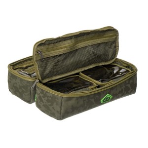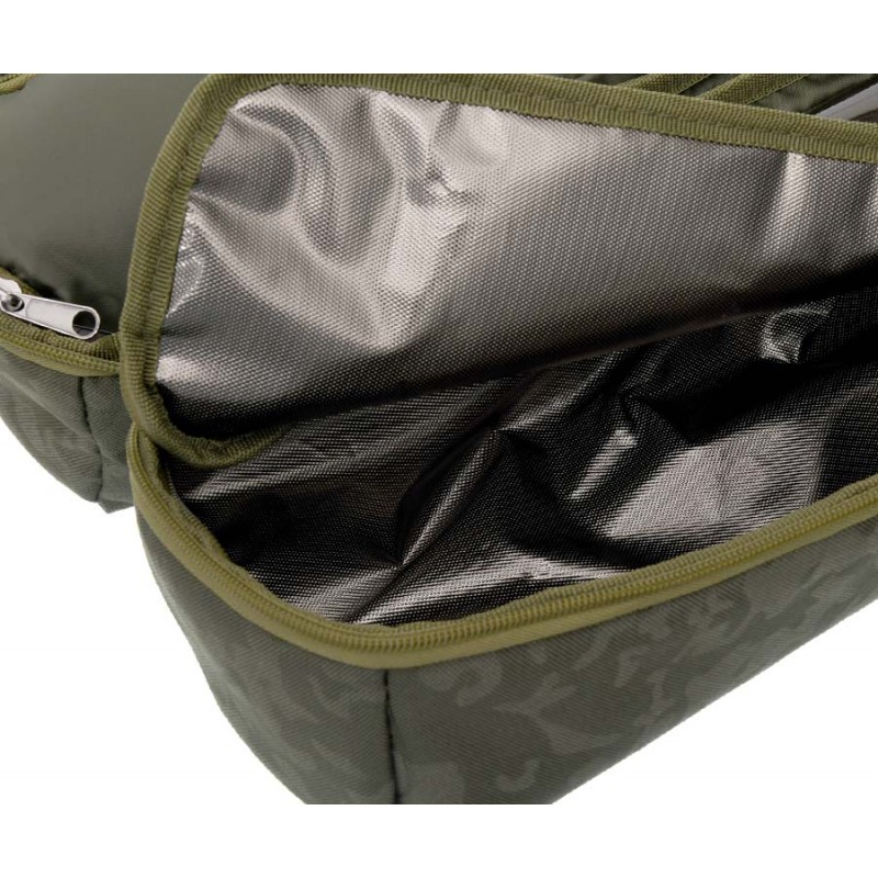 Carp Pro Diamond Bait And Tackle Cooler Bag – небольшая функциональная сумка с термоотделением, предназначенная для хранения скоропортящихся приманок, дипов, продуктов питания, а также рыболовных принадлежностей и аксессуаров. Изготовлена из фирменного влагостойкого камуфлированного материала Oxford 650D. Ее внутреннее пространство разделено на два отделения. Одно из них имеет крышку с прозрачным файлом на молнии, что позволяет держать под рукой пакетики с крючками, монтажами и пр. В самом отделении удобно расположить запасные шпули, бобины с леской, поводковыми материалами, грузила, кормушки, инструменты и пр. Второе отделение является термоизолированным. Оно оснащено двумя боксами с прозрачными крышками на молниях, где удобно хранить скоропортящиеся приманки, дипы, продукты и т.п. В крышке этого отделения есть внутренний плоский прозрачный сеточный карман на молнии. Для удобства транспортировки Diamond Bait And Tackle Cooler Bag предусмотрена прочная ручка.