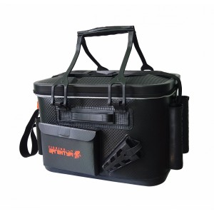 Носить сумку для рыболовных принадлежностей можно как за ручки, так и на плече с помощью специального ремня. Размеры сумки (Д x Ш x В): 40 x 25 x 27,5 см.