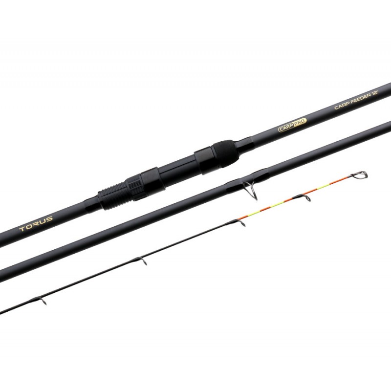 Carp Pro Torus Carp Feeder — серия удилищ, предназначенных для фидерной ловли карпа. Бланки среднего строя (Moderate Fast) из карбона FWC 5.0 отличаются солидным запасом прочности, что будет в полной мере востребовано при вываживании крупного экземпляра. При этом они характеризуются небольшим, как для своей мощности, диаметром. Модели оснащены разнесенными рукоятями из синтетического материала.Пропускные кольца и тюльпан со вставками из твердой керамики имеют рамы противозахлестной конструкции. Удилища комплектуются тремя карбоновыми вершинами номиналом 2, 3, 5 oz. Яркие, флуоресцентные цвета — желтый и оранжевый — делают вершины хорошо заметными на любом фоне и при любой освещенности, что помогает лучше отслеживать поклевки. Кроме своего прямого назначения, удилища могут использоваться для ловли белой рыбы на реках — там, где необходимы тяжелые кормушки.