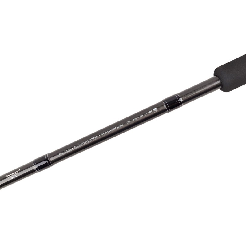 ELEGANCE FEEDER PRO Удилище фидерное World Champ 3.6 м, тест max 100 г - стильное, мощное удилище с уклоном на спортивную рыбалку, входящее в линейку новых моделей World Champ. Этой линейкой удилищ мы хотели отметить этот поистине фантастический и исторический успех, и дать победителям еще более технологичные инструменты для максимального успеха в ближайшие годы! Фидерные удилища серии WORLD CHAMP изготовлены из японского карбона Toray 46T и поэтому они фантастически легкие, чувствительные и при этом мощные и, конечно же, оснащены и первоклассной фурнитурой: кольца Fuji SiC, катушкодержатели Fuji и ручка из комбинации первоклассного материала EVA и натуральной пробки высокой градации. Каждое удилище оснащено тремя сменными карбоновыми вершинками. В эту топовую серию входит семь удилищ, которые покрывают все потребности, как спортивного, так и любительского направления в рыбалке, а также являются обязательным атрибутом для любителей высококачественного фидерного снаряжения.