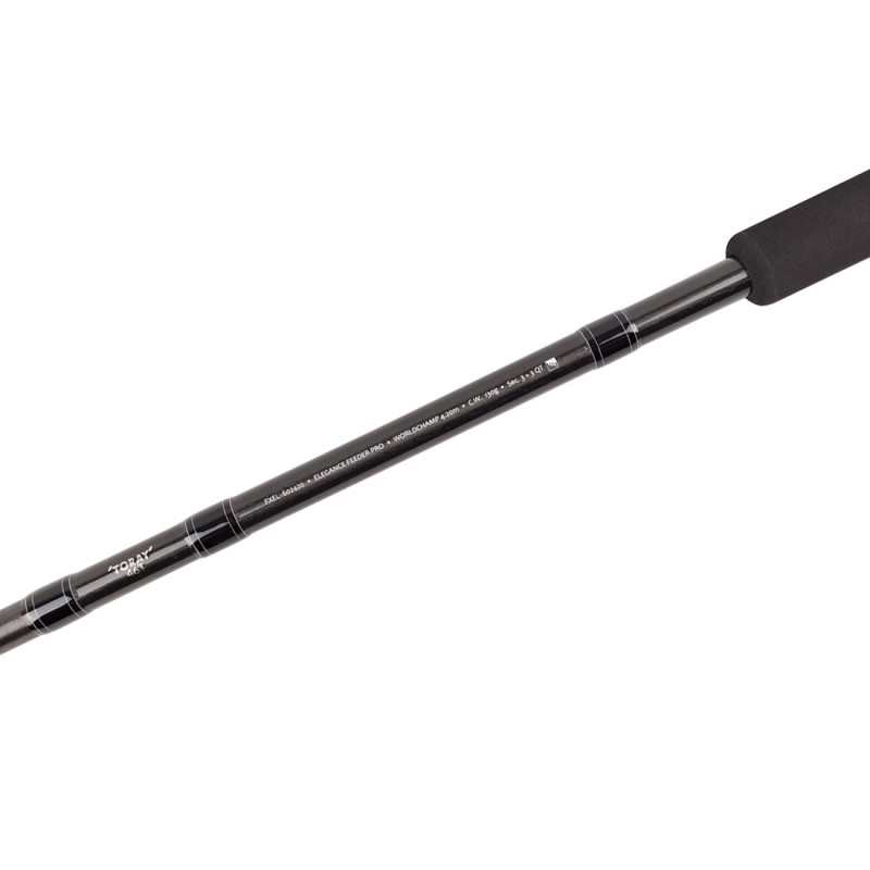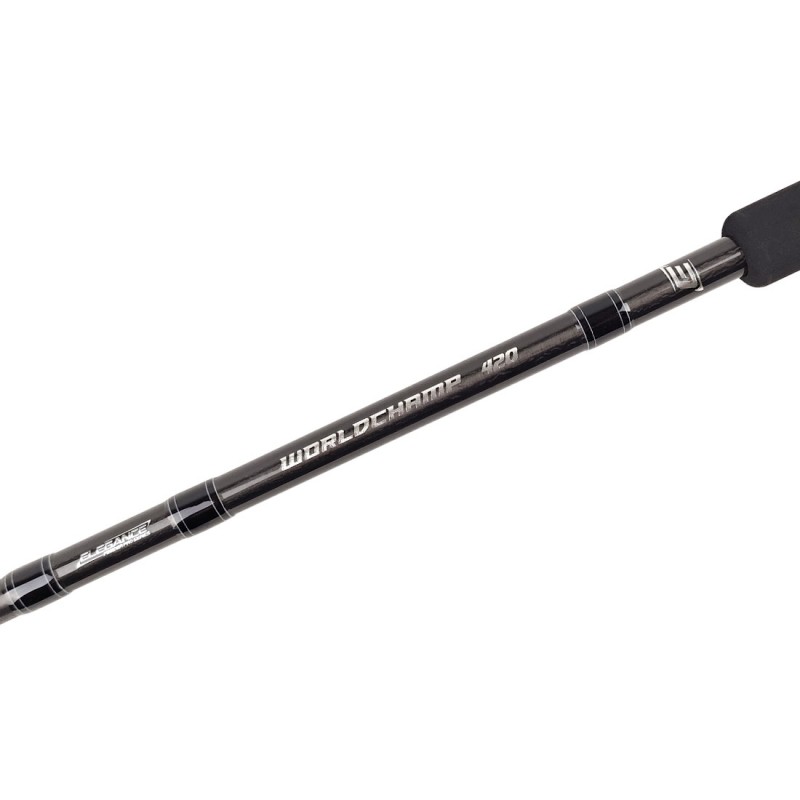 ELEGANCE FEEDER PRO Удилище фидерное World Champ 4.2 м, тест max 130 г - стильное, мощное удилище с уклоном на спортивную рыбалку, входящее в линейку новых моделей World Champ. Этой линейкой удилищ мы хотели отметить этот поистине фантастический и исторический успех, и дать победителям еще более технологичные инструменты для максимального успеха в ближайшие годы! Фидерные удилища серии WORLD CHAMP изготовлены из японского карбона Toray 46T и поэтому они фантастически легкие, чувствительные и при этом мощные и, конечно же, оснащены и первоклассной фурнитурой: кольца Fuji SiC, катушкодержатели Fuji и ручка из комбинации первоклассного материала EVA и натуральной пробки высокой градации. Каждое удилище оснащено тремя сменными карбоновыми вершинками. В эту топовую серию входит семь удилищ, которые покрывают все потребности, как спортивного, так и любительского направления в рыбалке, а также являются обязательным атрибутом для любителей высококачественного фидерного снаряжения.