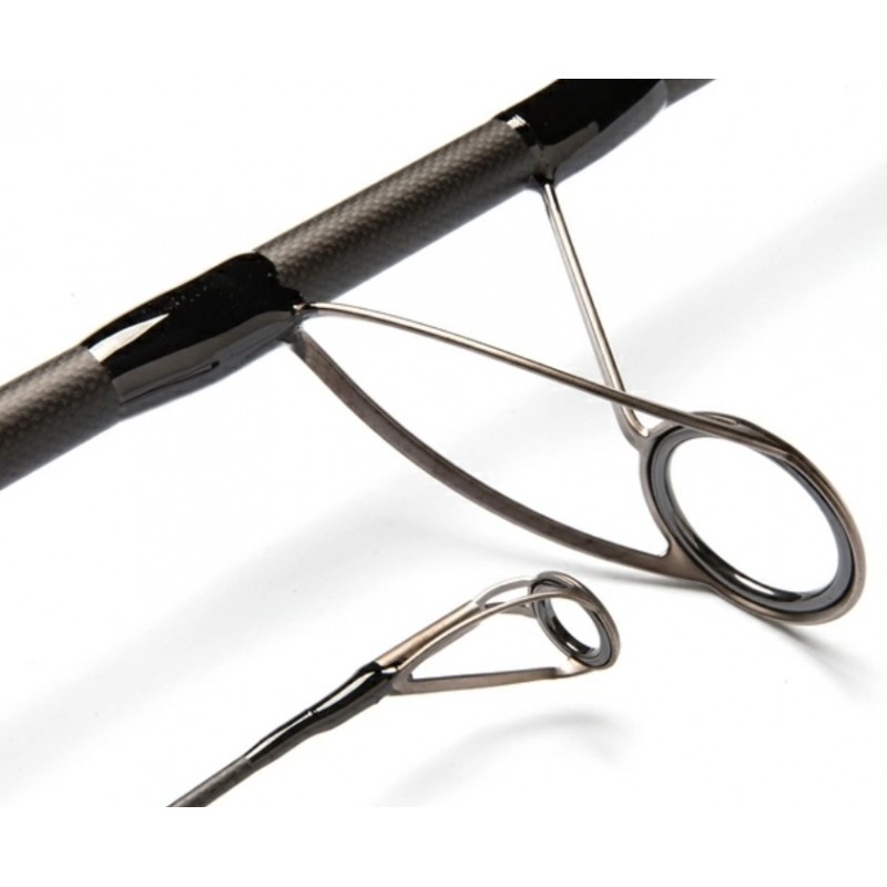 Благодаря разнонаправленной укладке тонких слоев карбона и нановолокна, в процессе вулканизации образуются электрические связи, а на выходе получается тонкий и мощный бланк, который способен решать самые сложные задачи. Удилище уснащено противозахлестными кольцами К-Series, входное кольцо (на трех ножках) KW-40мм, что позволяет использовать тонкие шнуры и нанфоил, остальные кольца на (двух ножках) КV и противозахлетстный тюльпан 16мм. Надежный, дымчатый катушкодержатель Fuji 18mm DPS Gunsmoke, установлен на удалении 64,5см от рукоятки, что обеспечивает удобный и широкий хват для выполнения дальних забросов с любой техникой. Эргономичная и удобная конусная рукоятка из EVA, обеспечивает удобный и надежный хват. Строй средне-быстрый, но со своим характером, и способно отправлять оснастки на дальние дистанции. При этом бланк нельзя назвать «дубовым» и им комфортно работать с грузилами 120-130 грамм. После заброса бланк быстро восстанавливается, что улучшает дальность и точность заброса, сохраняя при этом амортизирующие свойства при вываживание рыбы.