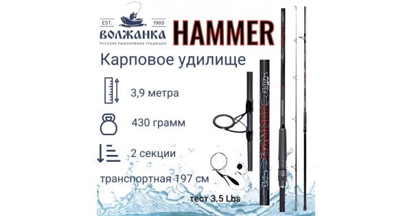 Удилище карповое "Volzhanka Hammer" 3.9м тест 3.5Lbs (2 секции)