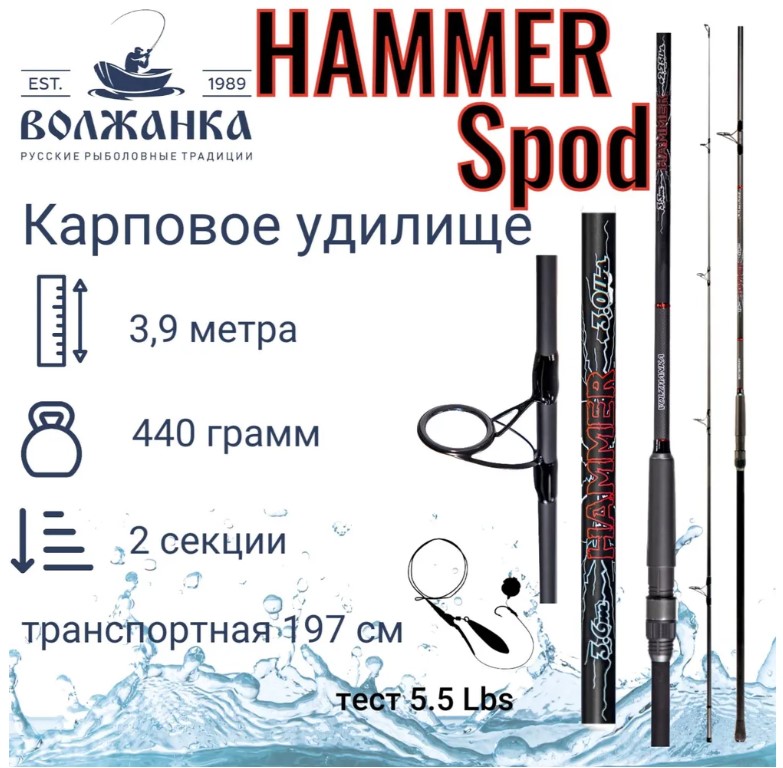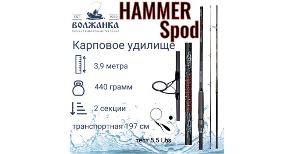 Удилище сподовое "Volzhanka Hammer Spod" 3.9м тест 5.5Lbs (2 секции)
