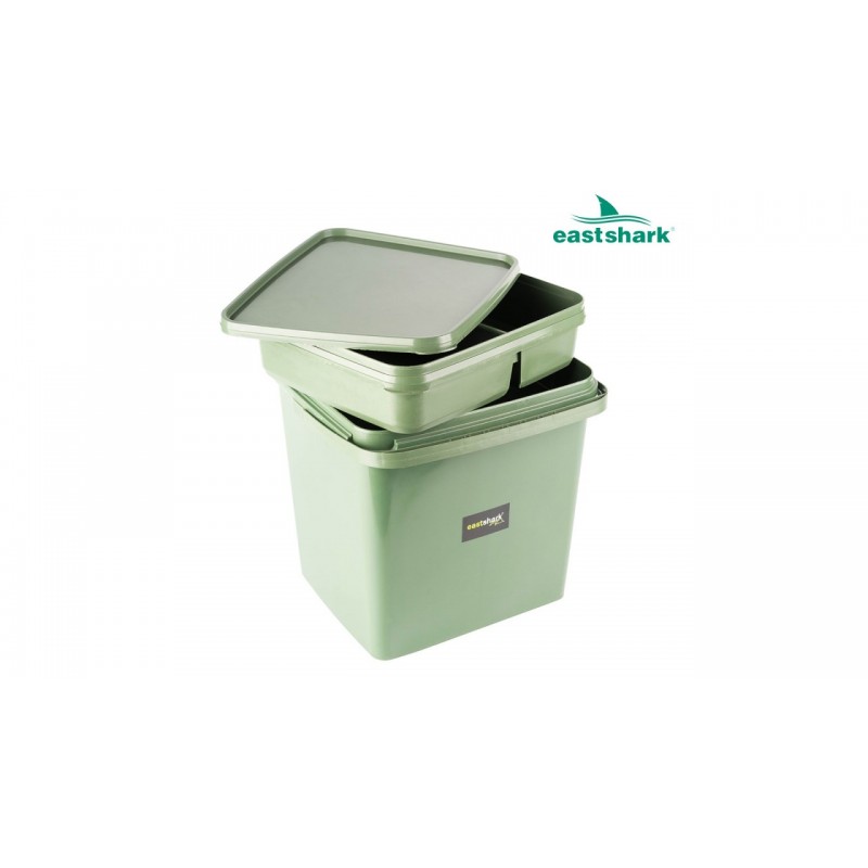Ведро EastShark Т - 005 имеет размеры 28*23*20 см, двойная плотная крышка с дополнительными отсеками для хранения.