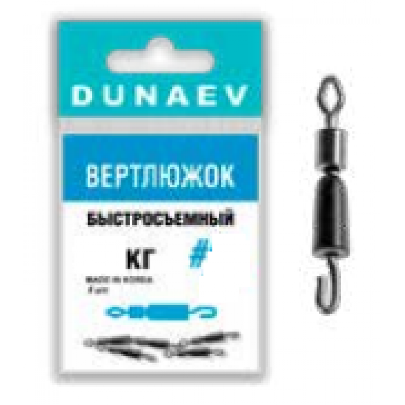 Быстросъёмный вертлюжок Dunaev – это качественный аксессуар для рыбалки, обеспечивающий свободное вращение оснастки и предотвращающий перекручивание лески. Идеально подходит для фидерной и поплавочной ловли.