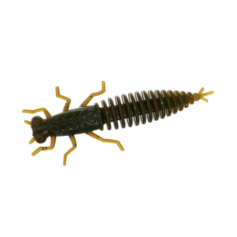 Мягкие приманки, имитирующие личинку стрекозы – казару. Благодаря ребристой конструкции имеют достаточно большой объем, отличаясь при этом исключительной мягкостью и подвижностью. При проводке кольцевые ребра создают турбулентность, выступающую дополнительным привлекающим фактором, а увеличенная благодаря им поверхность тела отдает в окружающую среду вдвое больше включенных в состав пластика мелкодисперсной соли и натурального аттрактанта. Дополнительную привлекательность приманке обеспечивают заманчиво подергивающиеся в движении лапки и хвостик. Благодаря реалистичному виду приманок к улову часто добавляется белая рыба, которая, наряду с хищниками, не прочь полакомиться личинками стрекозы и других насекомых. Эти парусящие приманки дольше других зависают над дном, что зачастую провоцирует на поклевку даже самую пассивную рыбу, причем, вне зависимости от сезона ловли! Приманки изготовлены из нового сверхмягкого пластика, имеющего повышенную аттрактацию и беспроигрышную цветовую гамму.