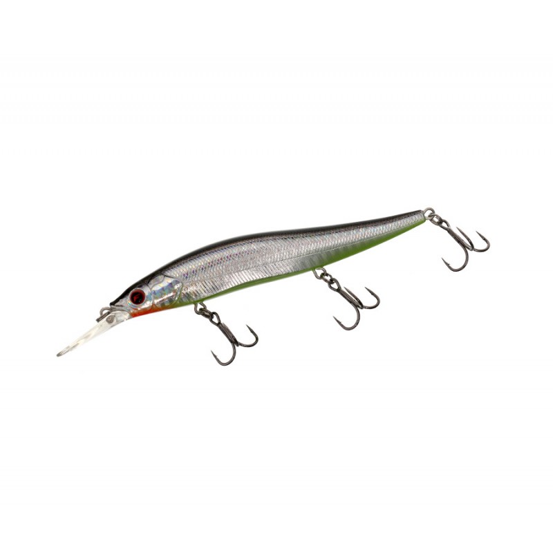 Плавающий воблер Flagman Bossy 110 F DR – отличная приманка для быстрого и эффективного облова обширных мелководий, несмотря на его большую лопатку. Это воблер minnow вытянутой формы, весит он 14,4 г и имеет длину 110 мм. Благодаря системе дальнего заброса летит не только далеко, но и очень точно. Подвижные стальные шарики при забросе уходят далеко в хвост, смещая туда центр тяжести. При первом же рывке они возвращаются на место и фиксируются специальным приливом снизу, благодаря чему при проводке балансировка приманки остается неизменной. Шарики издают негромкий звук высокой частоты. Воблер обладает собственной игрой, но равномерная проводка не выступает основной, его специализация – твичинг. При рывках Bossy совершает длинные «заплывы» по инерции, имеющие сложную траекторию. Причем, он сразу резко отклоняется в сторону, и амплитуда его движений получается довольно большой. Данная модель Bossy – плавающая, после остановки движения приманка медленно всплывает в толще воды, что часто провоцирует на атаку щуку и крупного окуня. Лобовое сопротивление воблера не слишком велико, поэтому для рывковой проводки нет необходимости использовать сверхжесткие удилища.