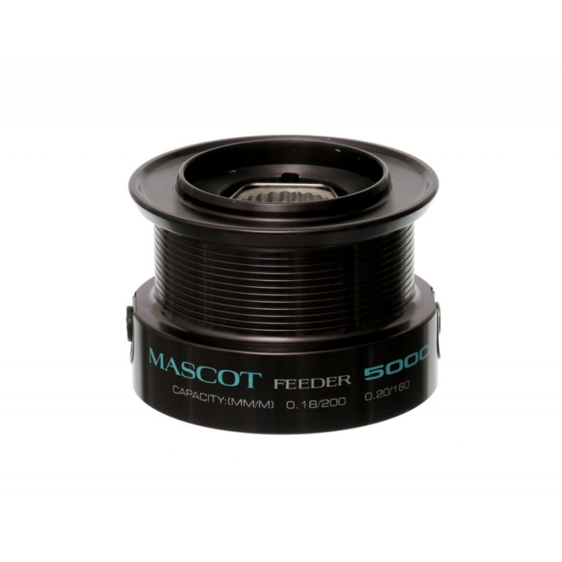 Запасная шпуля к фидерной катушке Mascot Feeder 5000. Точеная алюминиевая шпуля MascotFeeder оснащена двумя круглыми клипсами – стандартной металлической и инновационной резиновой, призванной предотвращать сходы трофейной рыбы при клипсовании. Шпуля Mascot Feeder-5000 вмещает 160 метров лески диаметром 0,2 мм и имеет конический буртик, что значительно повышает дальность забросов. Лесоемкость: 0.18 мм / 200 м, 0.20 мм / 160 м.