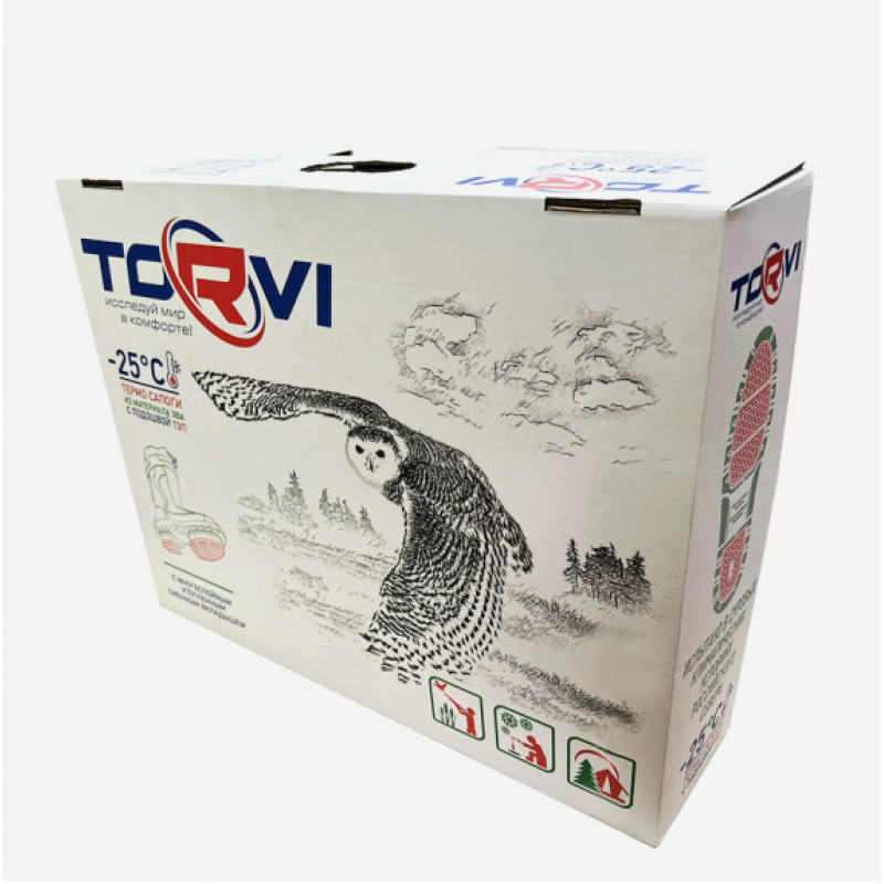 Современные, удобные, теплые, с нескользящей подошвой ТЭП сапоги из ЭВА Torvi -25°С прекрасно держат форму, не «садятся» со временем, не трескаются и не ломаются на морозе или в процессе длительной эксплуатации. В них можно уверенно чувствовать себя и на ледяной крошке, и в жидкой грязи. Одинаково удобно ходить и по мокрому дереву, и по гладкой плитке.